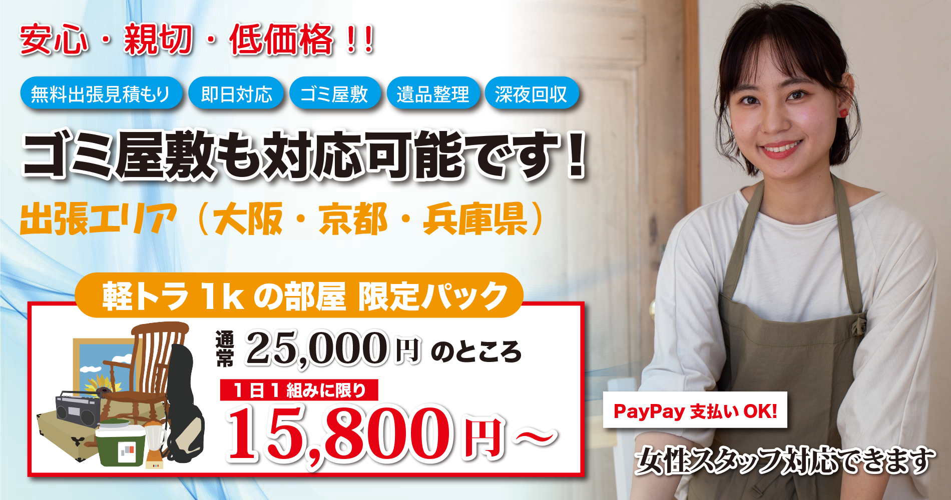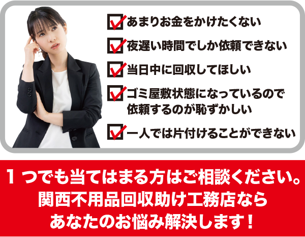 即日対応、深夜/早朝の回収も可能! 出張お見積りも無料で行なっておりますのでお気軽にお申し付けください。