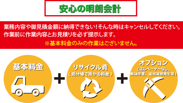 ※2階までの昇降料金は無料で承ります。エレベーターが使用できる場合3階より上への昇降料金も無料です。